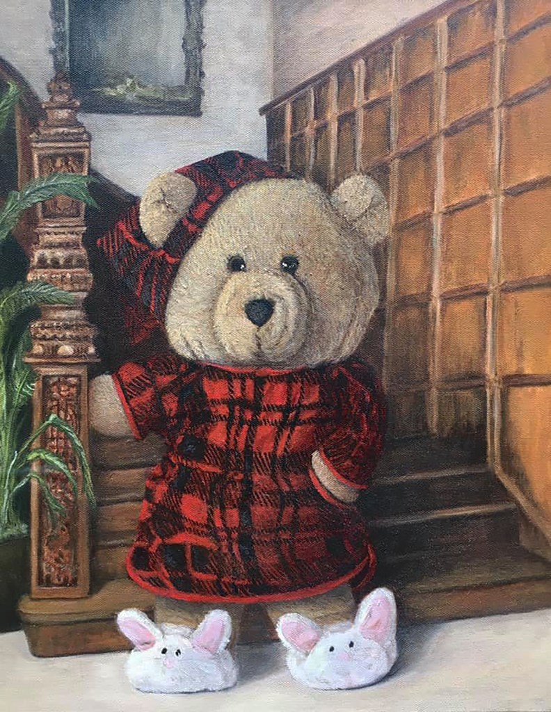 Let me paint a portrait of your favorite stuffed animal or doll. Here a few I’ve done. I love the process, starting with a photo shoot including various poses to get to know the subject, choosing the ideal pose, then adding traditional Rembrandt lighting and a minimal backdrop. And voila! you have a painting to preserve the image your beloved friend.